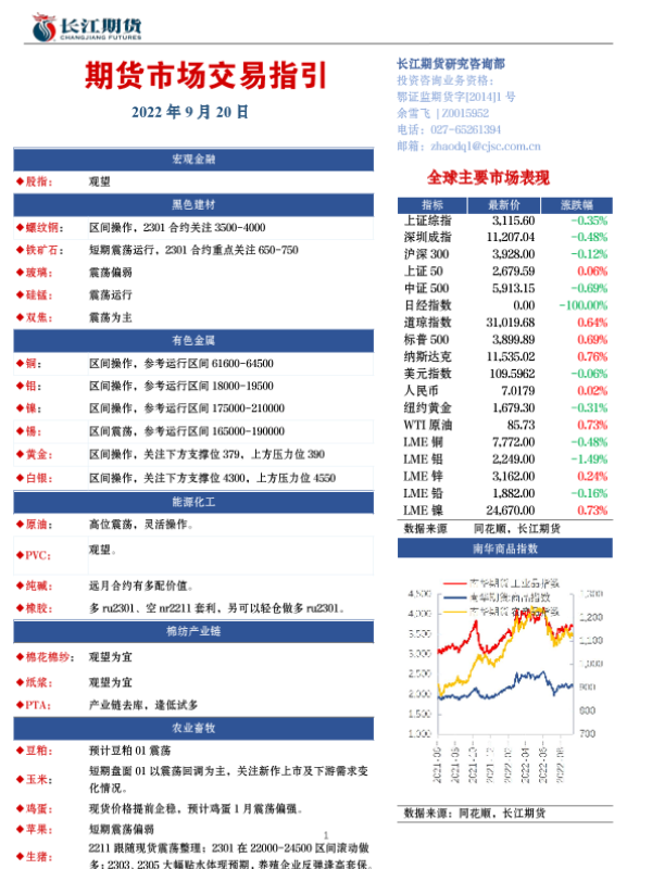 【长江期货】【20220920】期货市场交易指引-15页