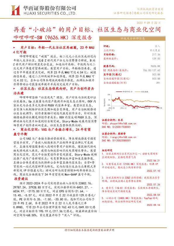 【华西证券】【20220922】哔哩哔哩_SW-9626.HK-深度报告:再看“小破站”的用户目标、社区生态与商业化空间-49页