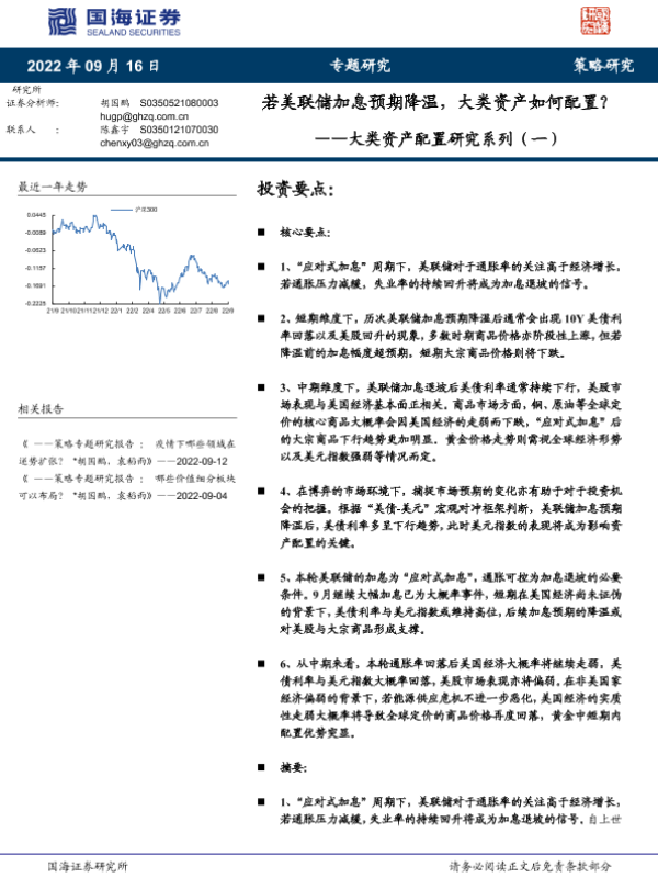 【国海证券】【20220916】大类资产配置研究系列(一):若美联储加息预期降温,大类资产如何配置?-36页
