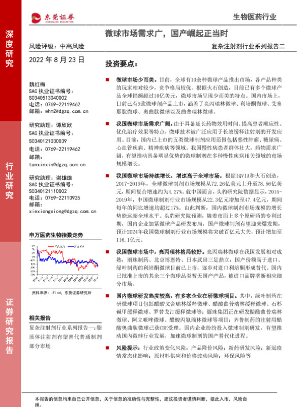 【东莞证券】【20220823】复杂注射剂行业系列报告二:微球市场需求广,国产崛起正当时-24页