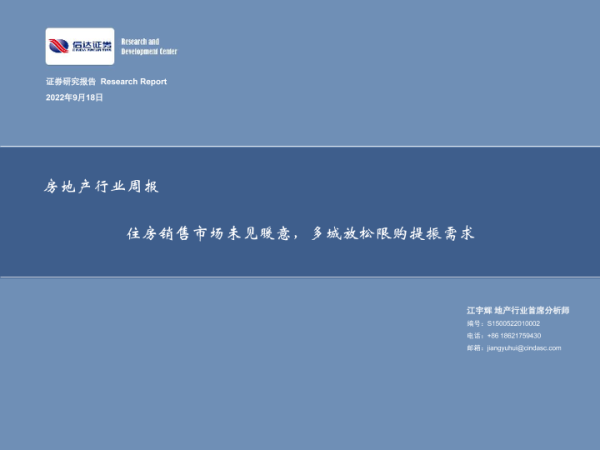 【信达证券】【20220918】房地产行业周报:住房销售市场未见暖意,多城放松限购提振需求-20页
