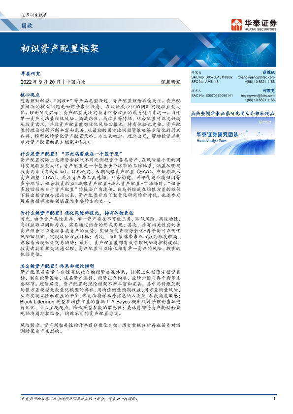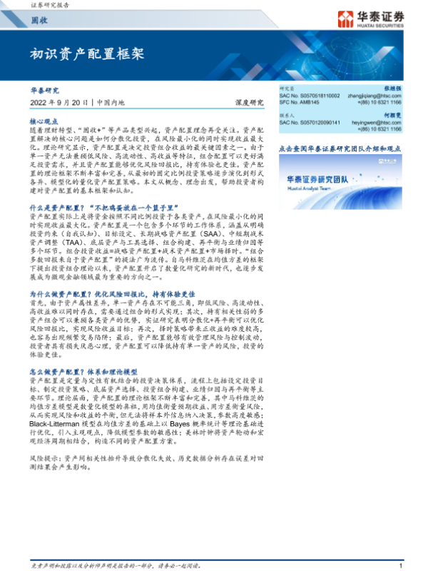 【华泰证券】【20220920】固定收益深度研究:初识资产配置框架-23页