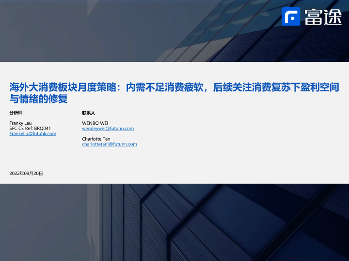 【富途证券】【20220920】海外大消费行业板块月度策略:内需不足消费疲软,后续关注消费复苏下盈利空间与情绪的修复-33页