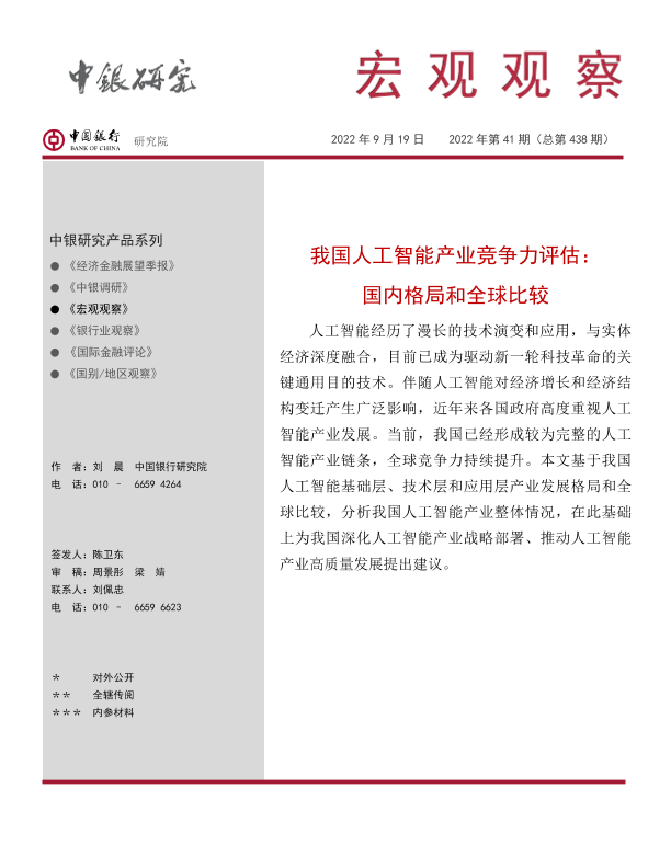 【中国银行研究院】【20220919】我国人工智能产业竞争力评估:国内格局和全球比较-23页