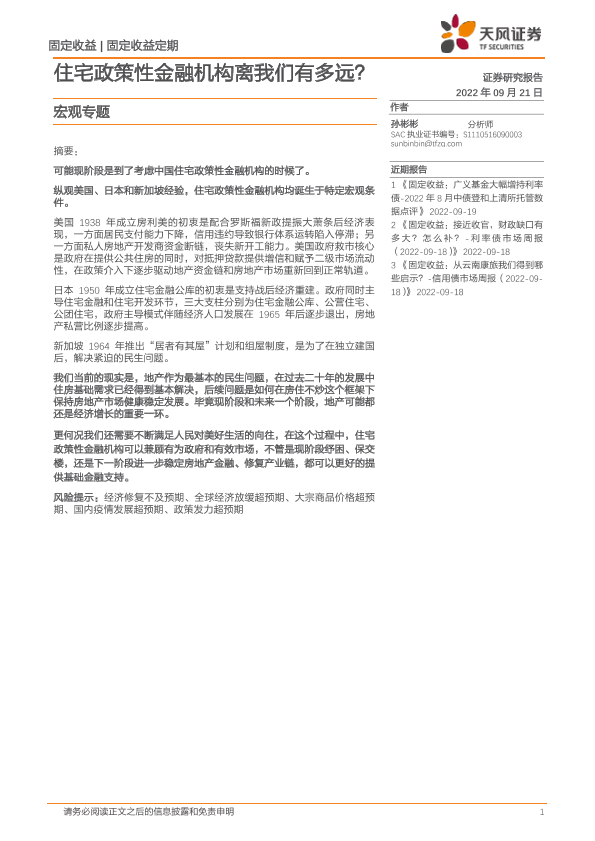 【天风证券】【20220921】宏观专题:住宅政策性金融机构离我们有多远?-18页