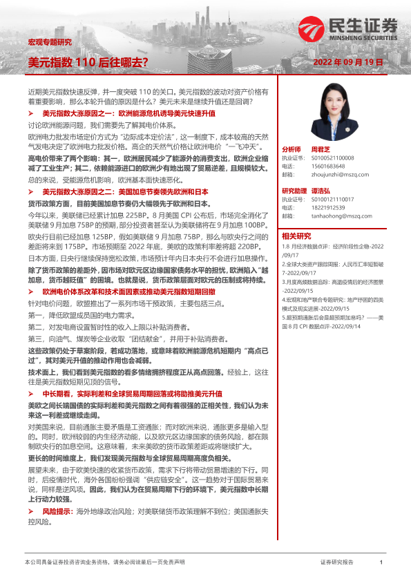 【民生证券】【20220919】宏观专题研究:美元指数110后往哪去?-16页