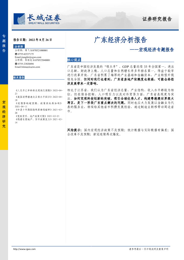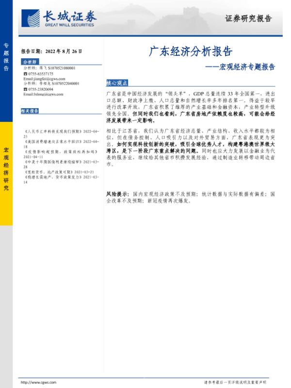 【长城证券】【20220826】宏观经济专题报告:广东经济分析报告-21页