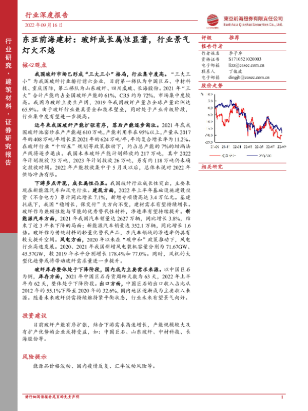 【东亚前海证券】【20220916】建材行业:玻纤成长属性显著,行业景气灯火不熄-41页