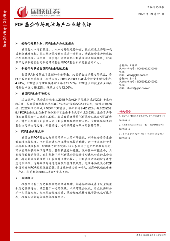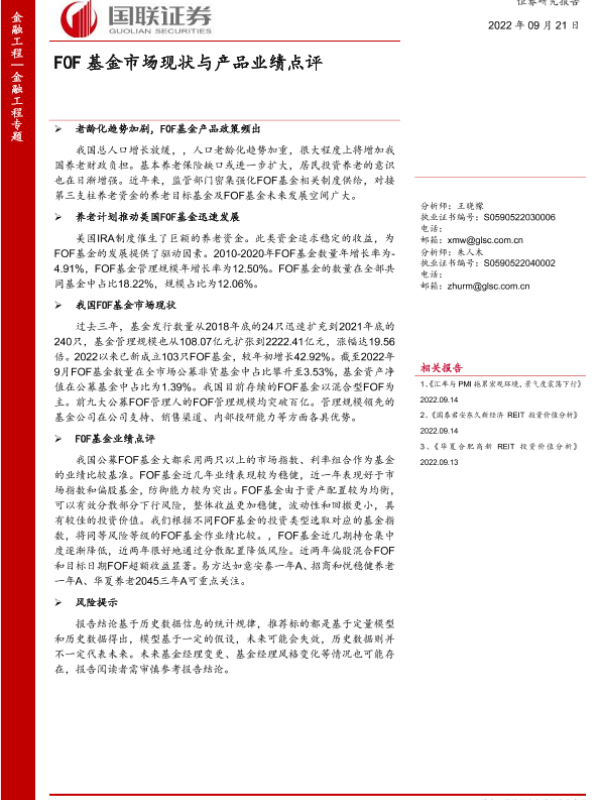 【国联证券】【20220921】金融工程专题:FOF基金市场现状与产品业绩点评-24页