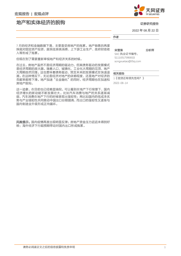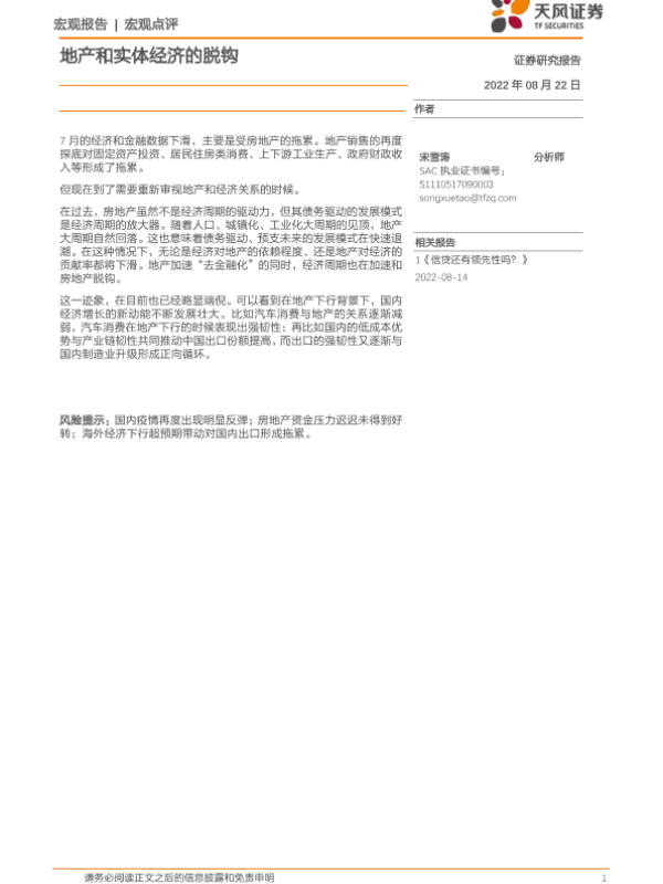 【天风证券】【20220822】宏观点评:地产和实体经济的脱钩-15页