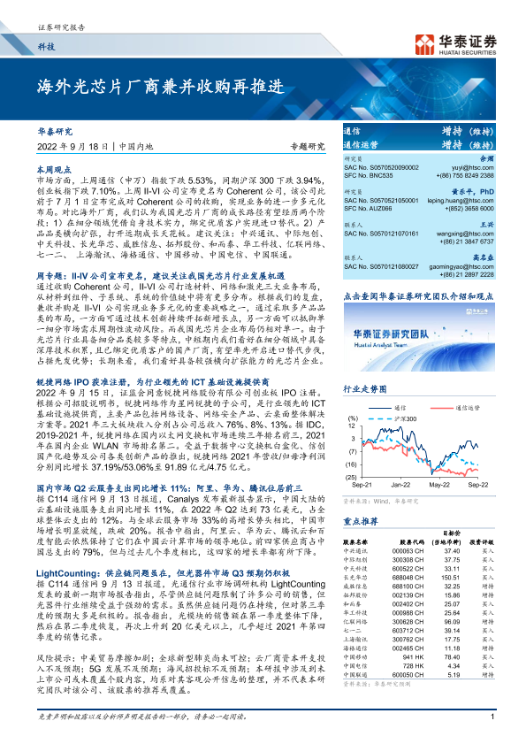 【华泰证券】【20220918】科技行业专题研究:海外光芯片厂商兼并收购再推进-24页