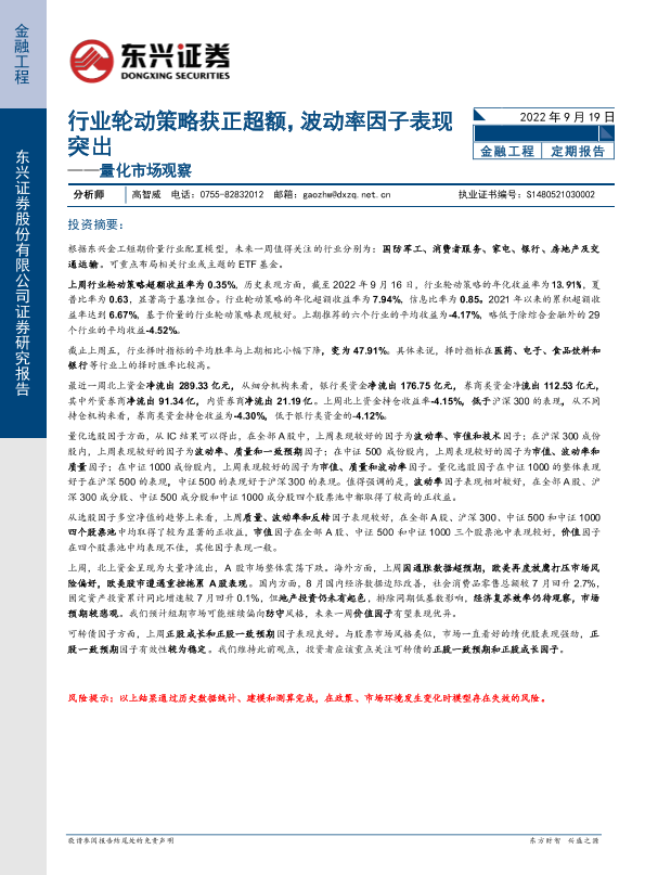 【东兴证券】【20220919】量化市场观察:行业轮动策略获正超额,波动率因子表现突出-21页