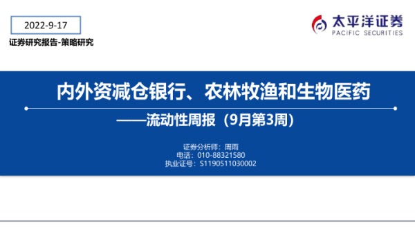 【太平洋证券】【20220917】流动性周报(9月第3周):内外资减仓银行、农林牧渔和生物医药-19页