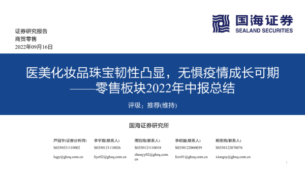 【国海证券】【20220916】贸零售行业零售板块2022年中报总结:医美化妆品珠宝韧性凸显,无惧疫情成长可期-31页
