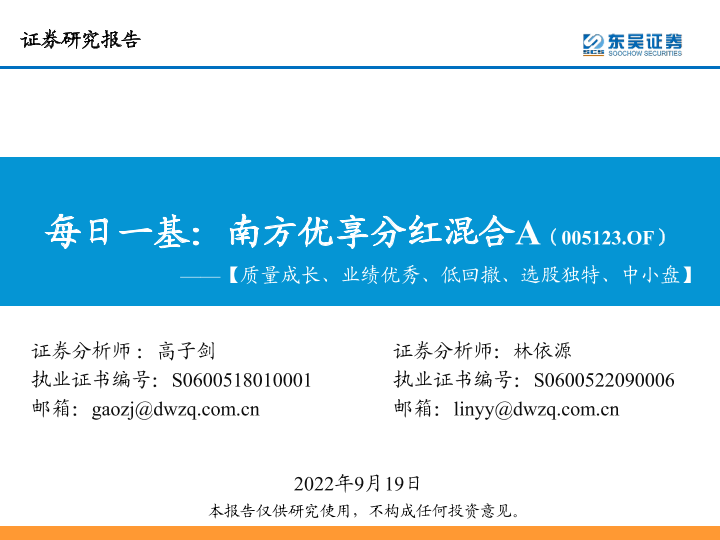 【东吴证券】【20220919】每日一基:南方优享分红混合A(005123.OF)-15页