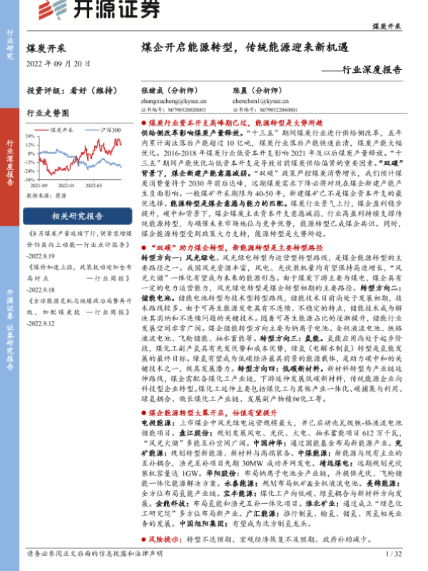【开源证券】【20220920】煤炭开采行业深度报告:煤企开启能源转型,传统能源迎来新机遇-32页