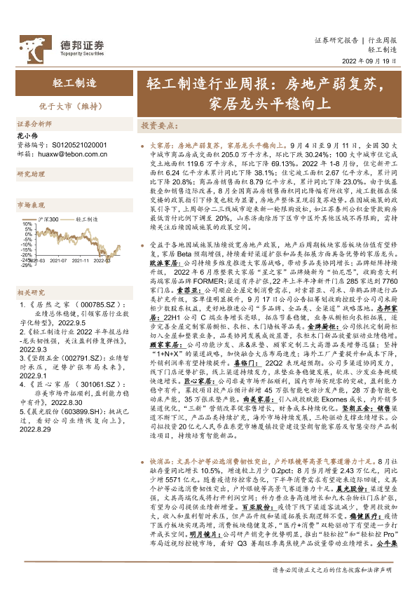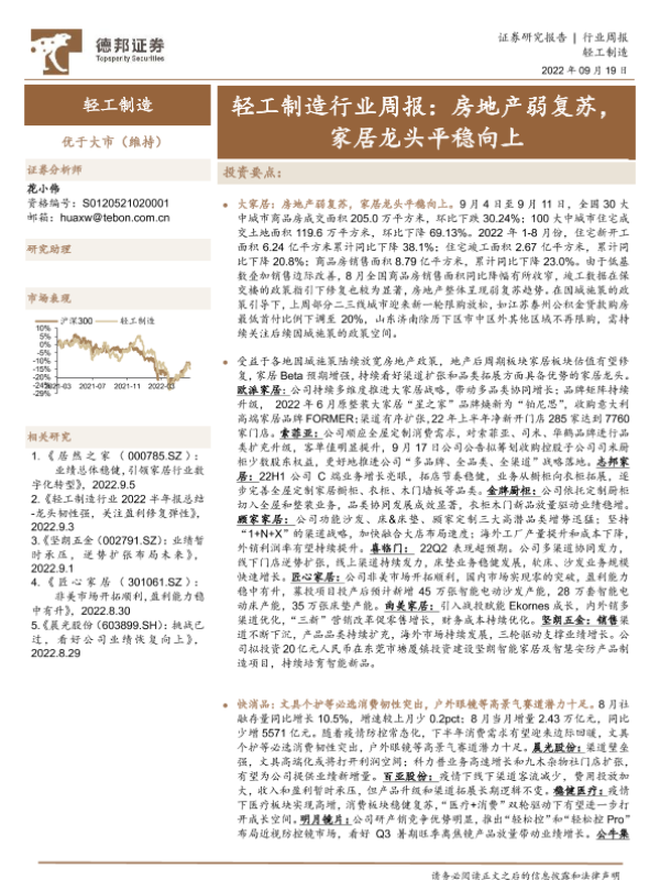 【德邦证券】【20220919】轻工制造行业周报:房地产弱复苏,家居龙头平稳向上-17页