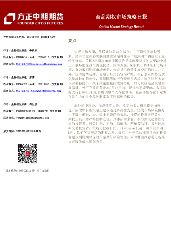 【方正中期期货】【20220922】商品期权市场策略日报20220922-50页