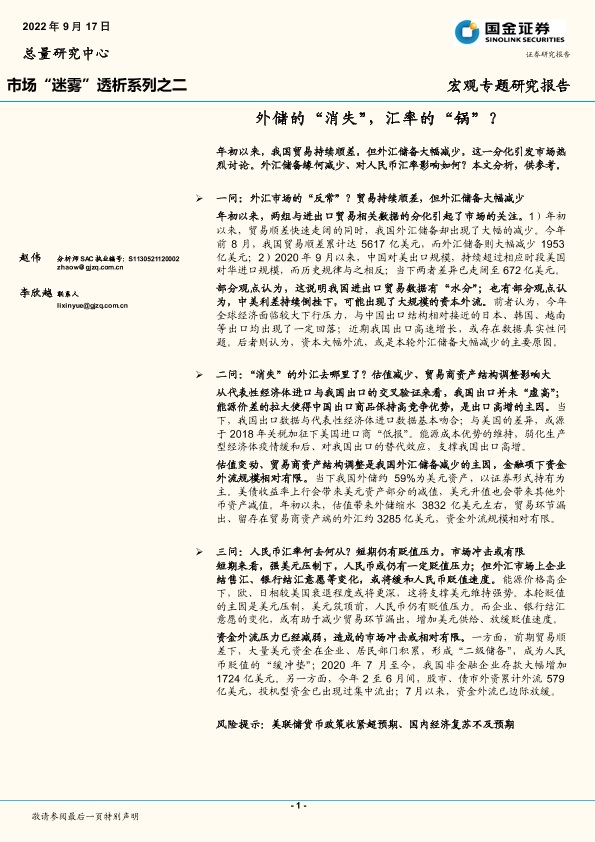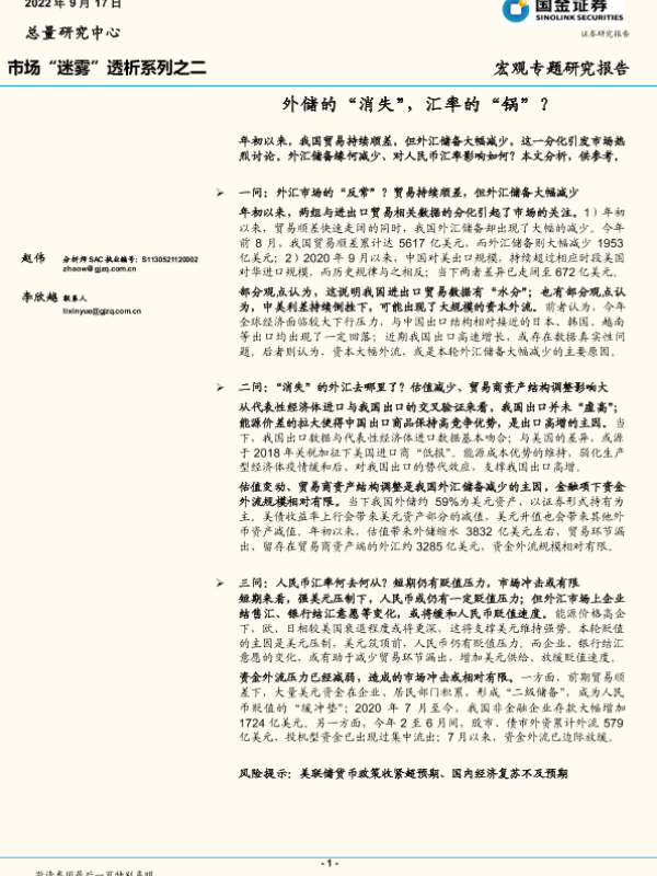 【国金证券】【20220917】市场“迷雾”透析系列之二:外储的“消失”,汇率的“锅”?-18页