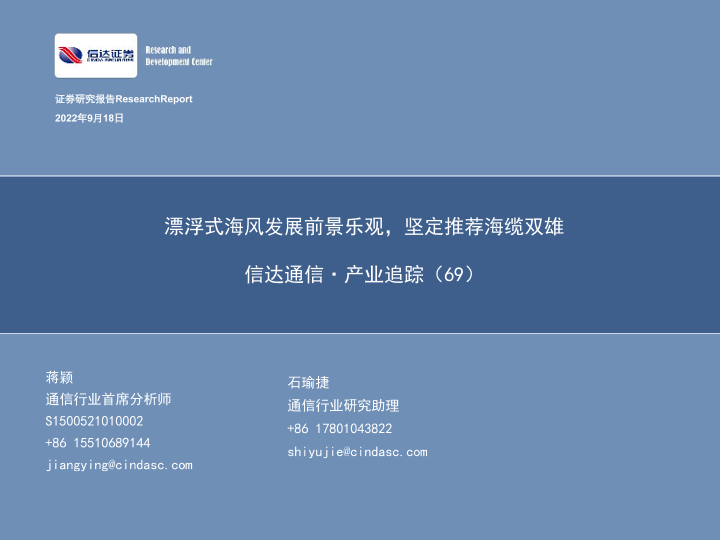【信达证券】【20220918】通信·产业追踪(69):漂浮式海风发展前景乐观,坚定推荐海缆双雄-33页