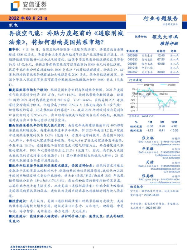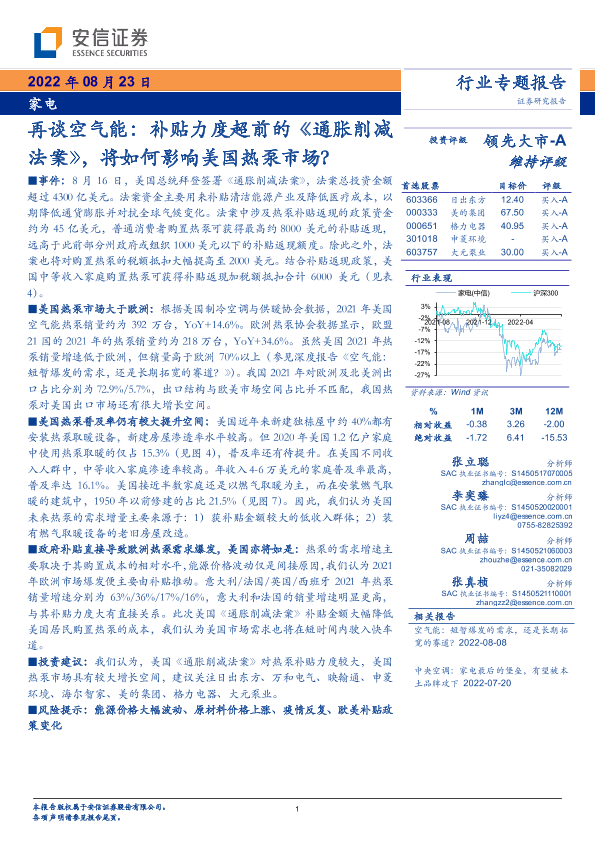 【安信证券】【20220823】家电行业专题报告:再谈空气能,补贴力度超前的《通胀削减法案》,将如何影响美国热泵市场?-16页