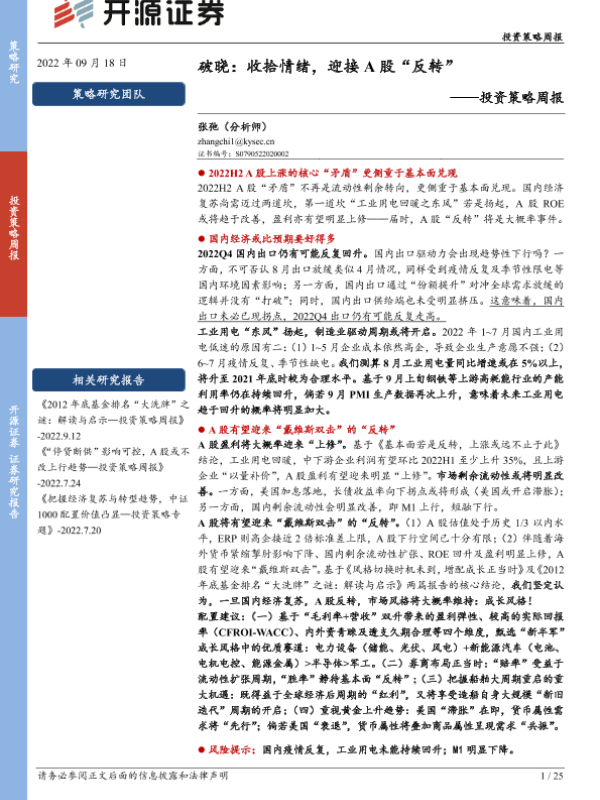 【开源证券】【20220918】破晓:收拾情绪,迎接A股“反转”-25页
