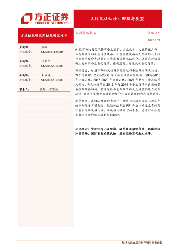 【方正证券】【20220921】A股风格切换:回顾与展望-20页