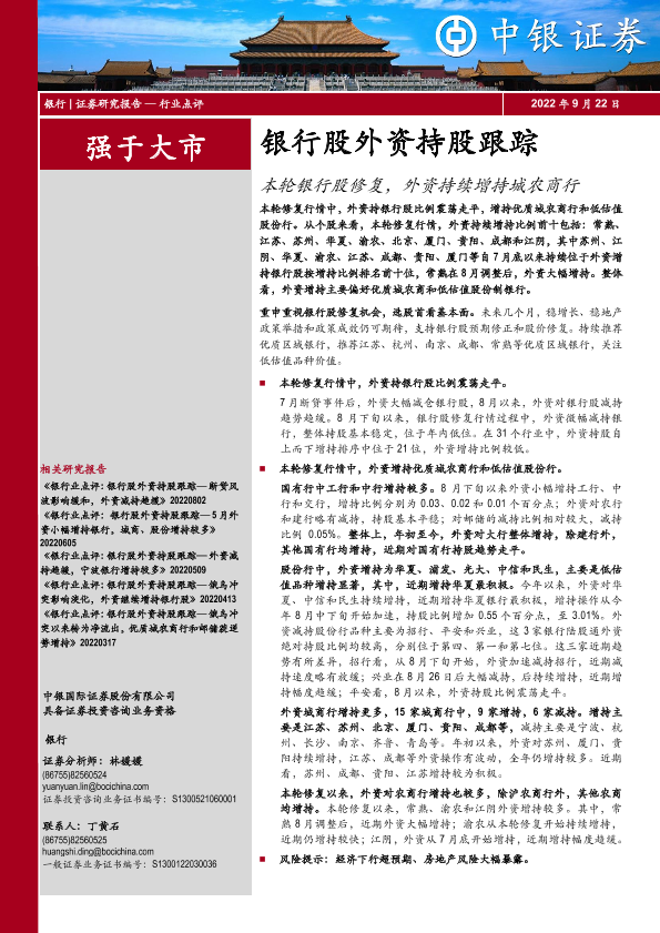 【中银证券】【20220922】银行股外资持股跟踪:本轮银行股修复,外资持续增持城农商行-14页