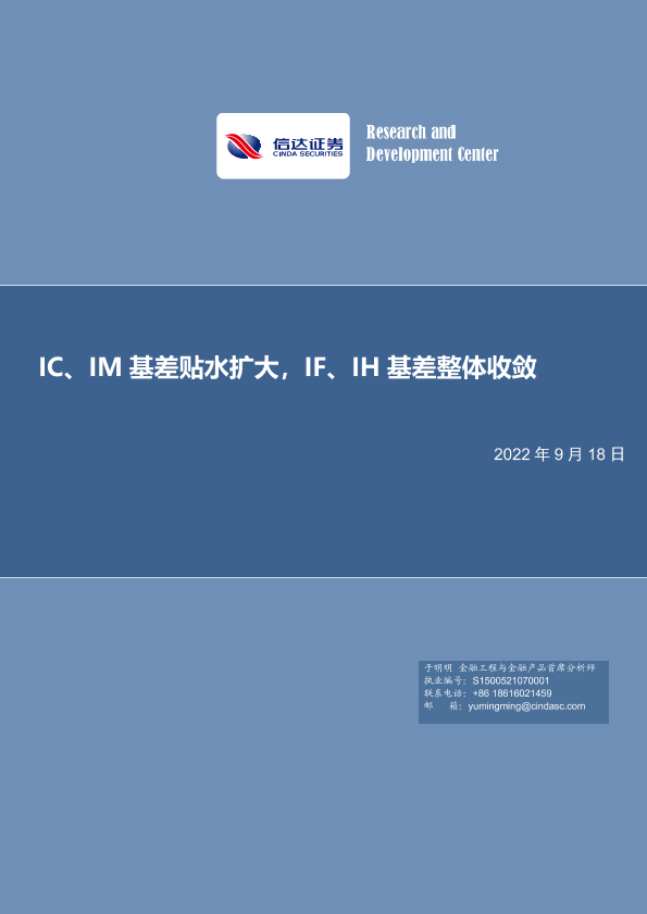 【信达证券】【20220918】IC、IM基差贴水扩大,IF、IH基差整体收敛-20页