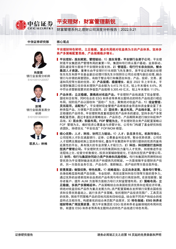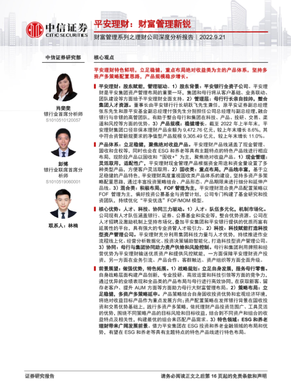 【中信证券】【20220921】银行业财富管理系列之理财公司深度分析报告:平安理财,财富管理新锐-17页