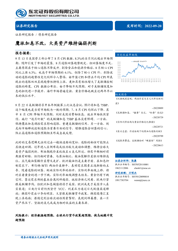 【东北证券】【20220920】鹰派加息不改,大类资产维持偏弱判断-16页