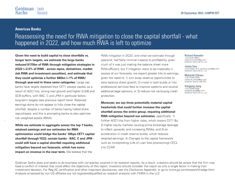 【Goldman Sachs】【20220920】Reassessing the need for RWA mitigation to close the capital shortfall - what happened in 2Q22, and how much RWA is left to optimize-31页