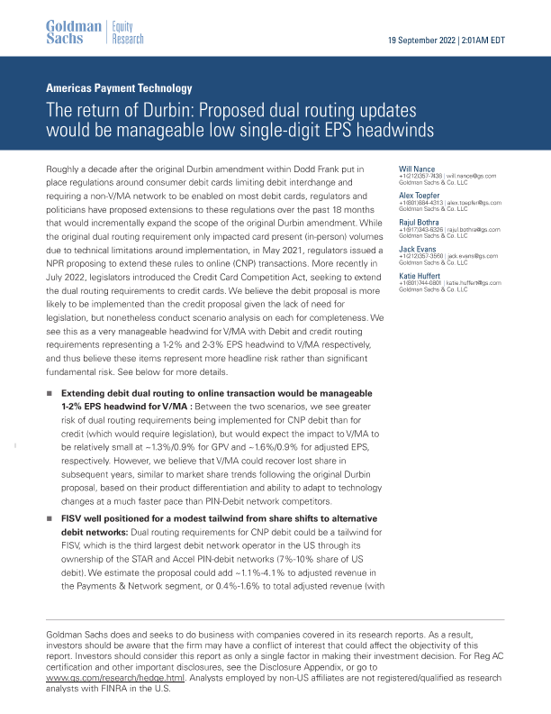 【Goldman Sachs】【20220919】The return of Durbin Proposed dual routing updates would be manageable low single-digit EPS headwinds-21页