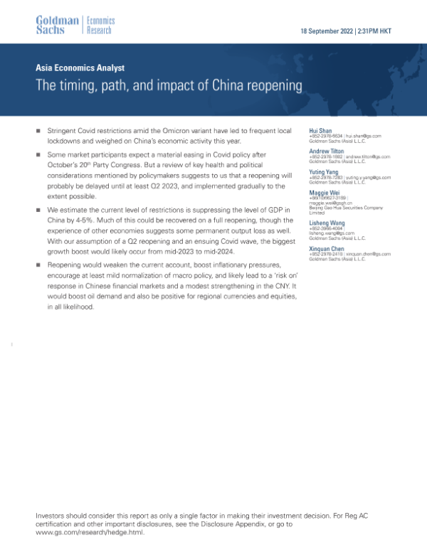 【Goldman Sachs】【20220918】The timing, path, and impact of China reopening-15页