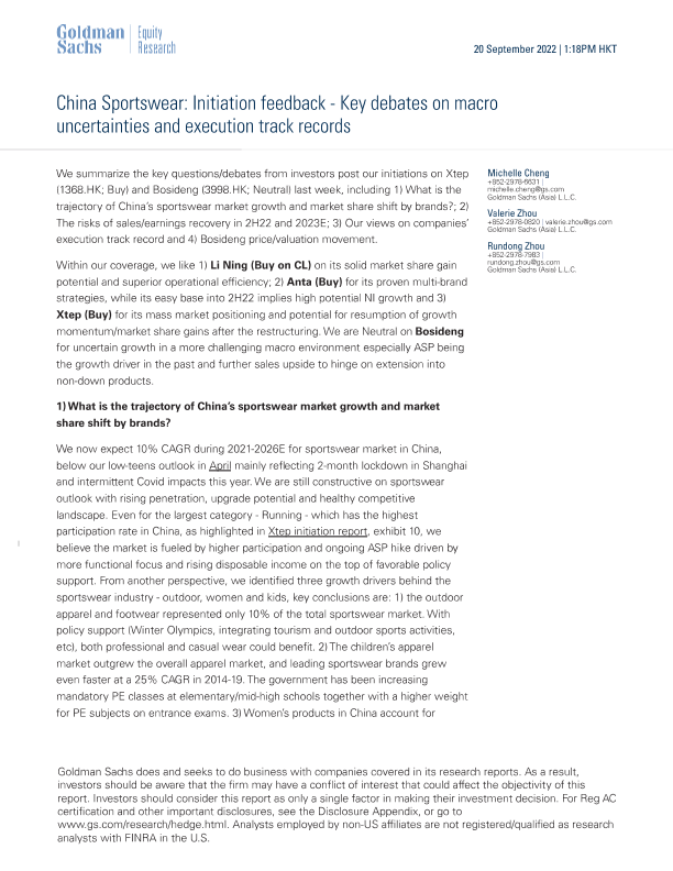【Goldman Sachs】【20220920】China Sportswear Initiation feedback- Key debates on macro uncertainties and execution track records-14页