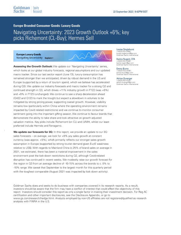 【Goldman Sachs】【20220922】Navigating Uncertainty 2023 Growth Outlook+6%; key picks Richemont(CL-Buy)-36页