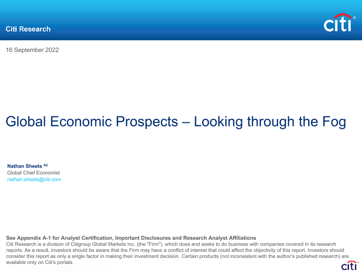 【Citigroup Global Markets Inc.】【20220916】Global Economic Prospects – Looking through the Fog-17页