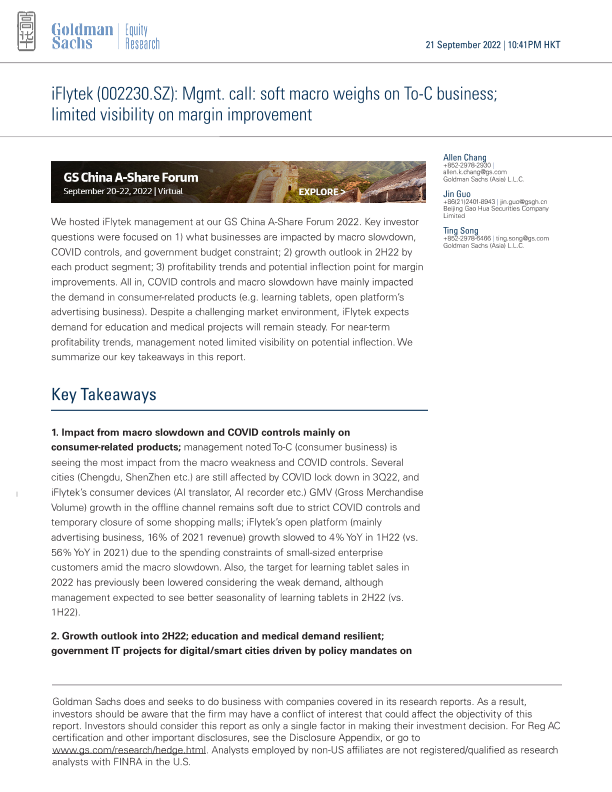 【Goldman Sachs】【20220921】t macro weighs on To-C business; limited visibility on margin improvement-9页