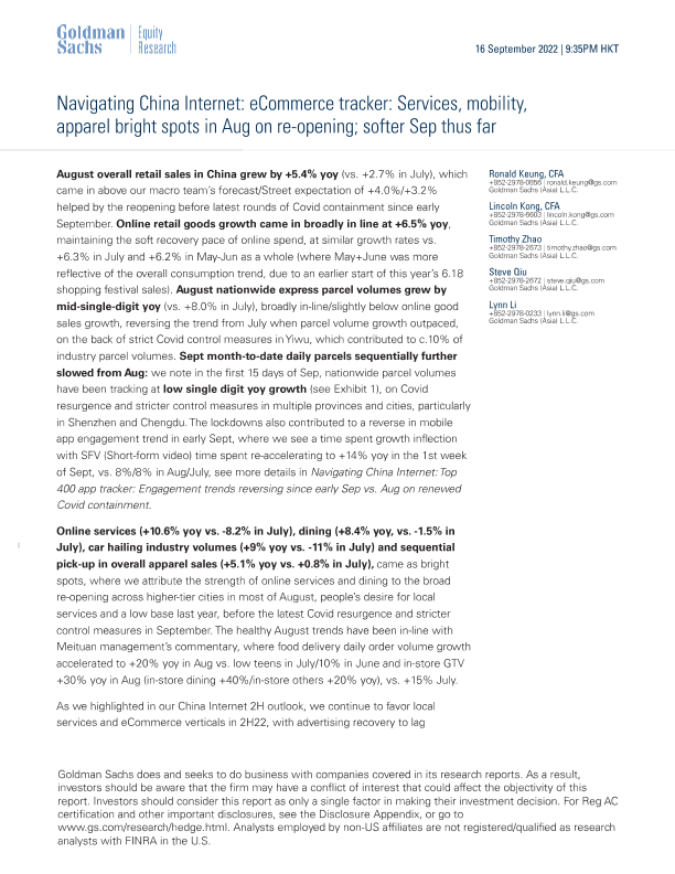 【Goldman Sachs】【20220916】mobility, apparel bright spots in Aug on re-opening; softer Sep thus far-15页