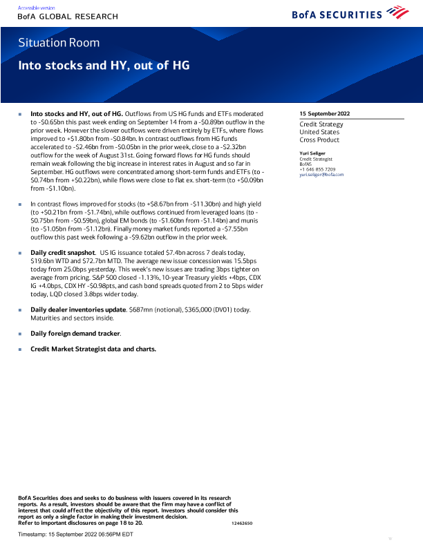 【BofA Securities】【20220915】Situation Room Into stocks and HY, out of HG-20页