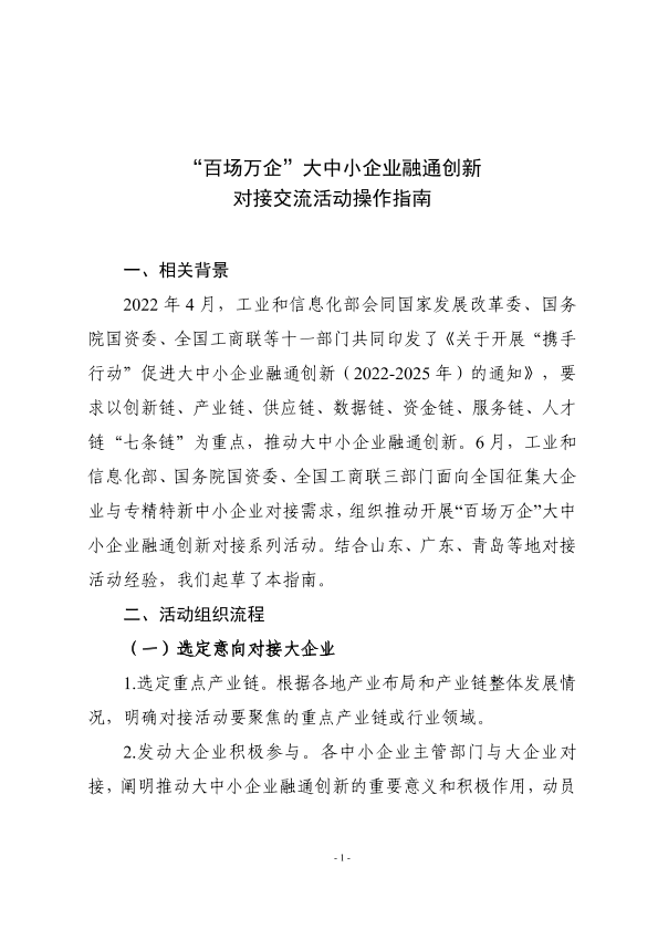 【工业和信息化部】【2022】“百场万企”大中小企业融通创新对接交流活动操作指南-9页