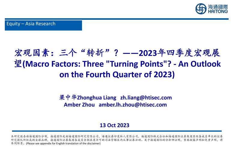 【海通国际】【20231013】2023年四季度宏观展望:宏观因素,三个“转折”?-63页