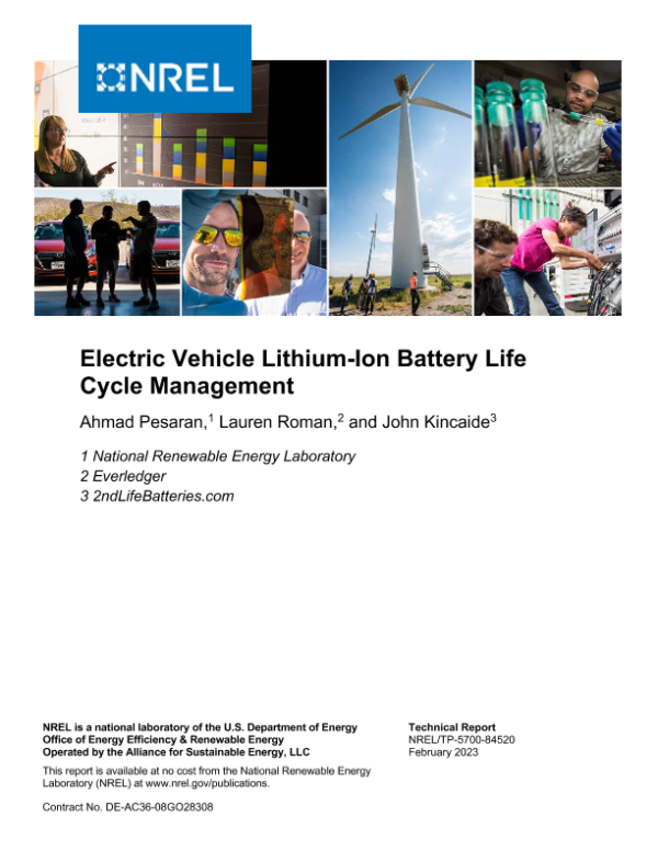 【National Renewable Energy Laboratory (NREL)】【202302】Electric Vehicle Lithium-Ion Battery Life Cycle Management-54页