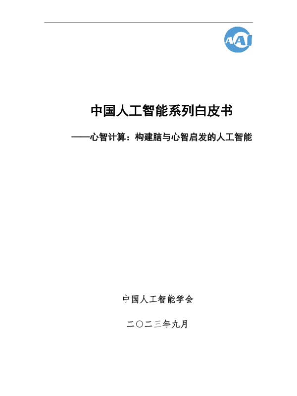 【中国人工智能学会】【2023】中国人工智能系列白皮书——心智计算:构建脑与心智启发的人工智能-70页