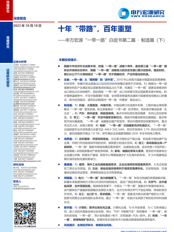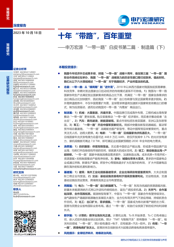 【申万宏源】【20231018】十年“带路”,百年重塑——申万宏源“一带一路”白皮书第二篇·制造篇(下)-37页