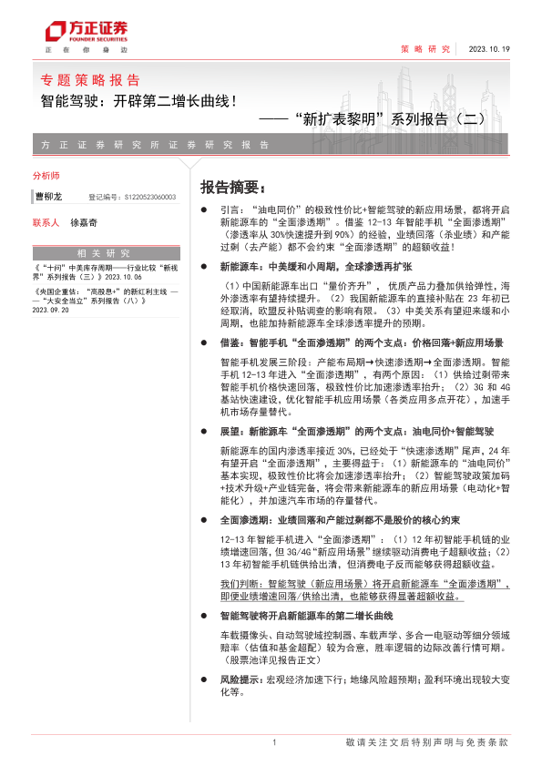 【方正证券】【20231019】智能驾驶,开辟第二增长曲线!-20页