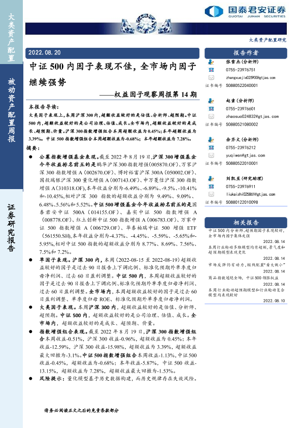 【国泰君安证券】【20220820】权益因子观察周报第14期:中证500内因子表现不佳,全市场内因子继续强势-16页
