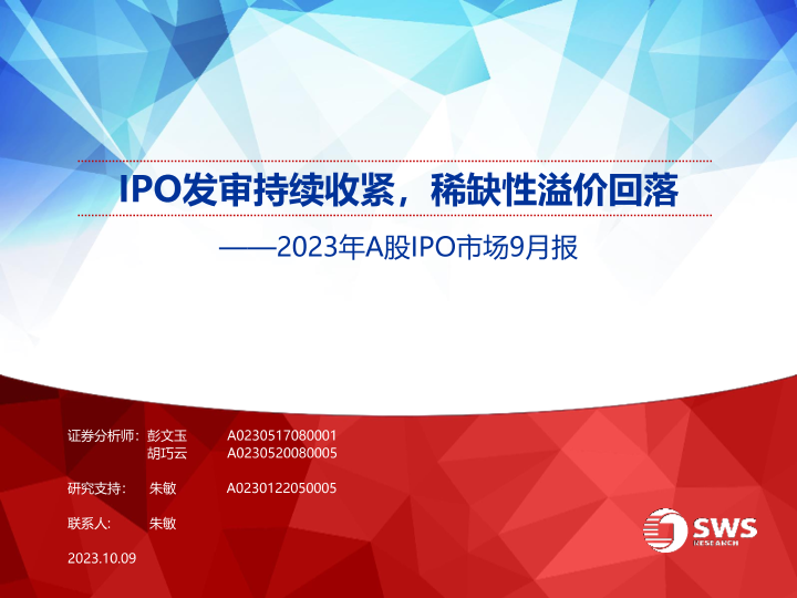 【申万宏源】【20231009】2023年A股IPO市场9月报:IPO发审持续收紧,稀缺性溢价回落-18页