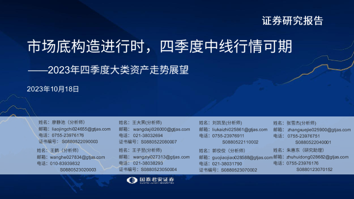 【国泰君安证券】【20231018】2023年四季度大类资产走势展望:市场底构造进行时,四季度中线行情可期-48页