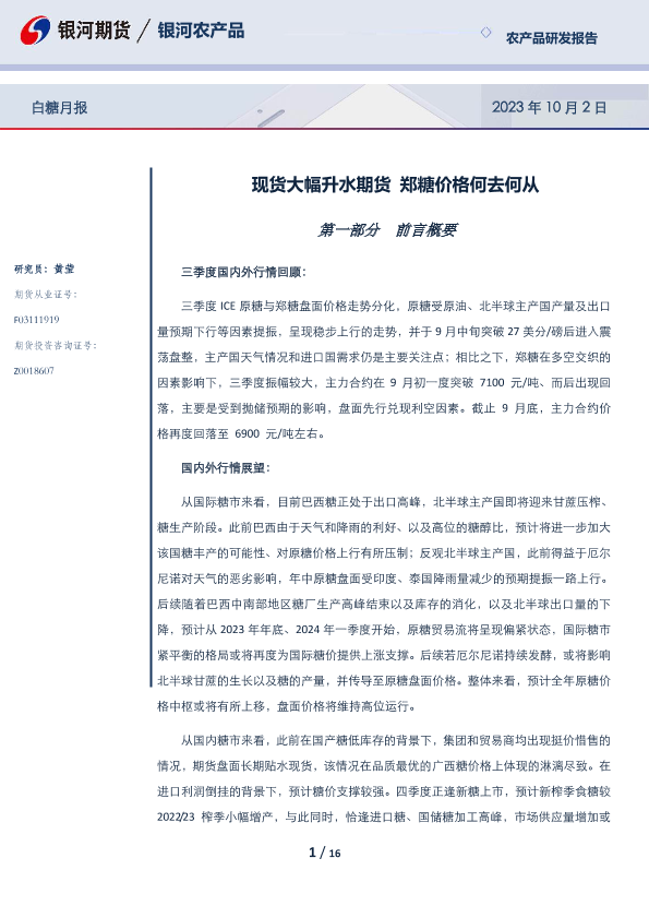 【银河期货】【20231002】白糖月报:现货大幅升水期货,郑糖价格何去何从-16页